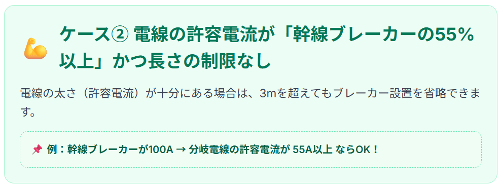 電線の許容電流が幹線ブレーカーの55%以上 ✅ 長さ制限なしで免除OK